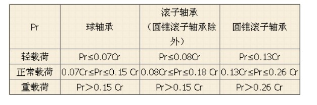 Pr与额定动载荷Cr的关系界定的。见下表